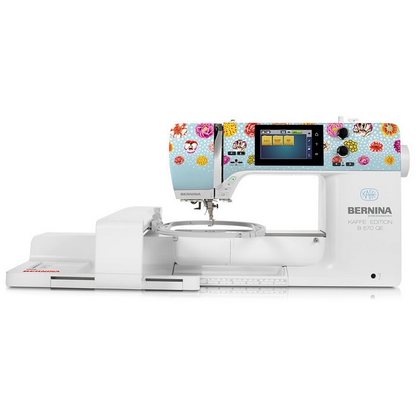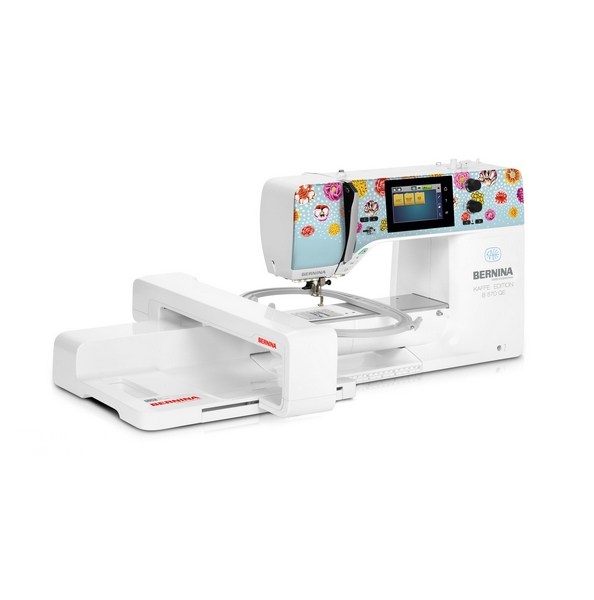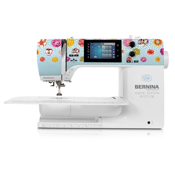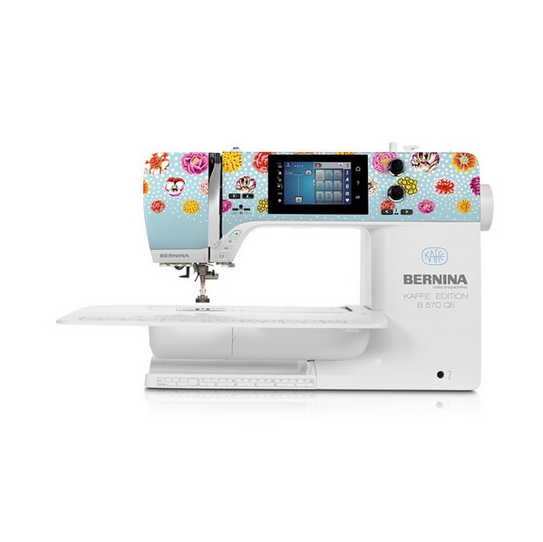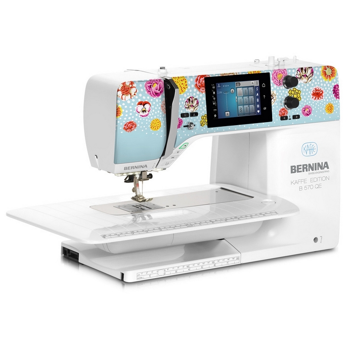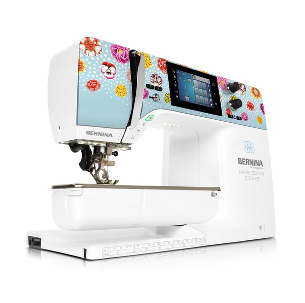 B 570 QE Kaffe Edition sa svojim produženim slobodnim krakom nudi 215 mm desno od igle. Savršen za izvođenje velikih projekata prošivanja s najvećom lakoćom. Kaffe Edition ukrasni šavovi, koji su jedinstveni za ovo izdanje i temeljeni su na ručnom crtežu samog Kaffe Fassetta, također vam daju obilje kreativne slobode.