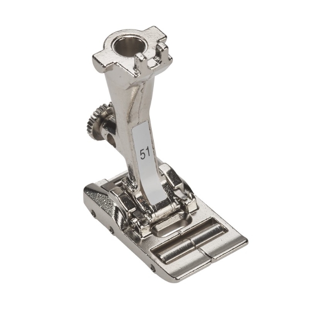 This makes Roller foot #51 ideal for the decorative topstitching of leather, as well as the construction and repair of bags, raincoats and other garments or home furnishings.