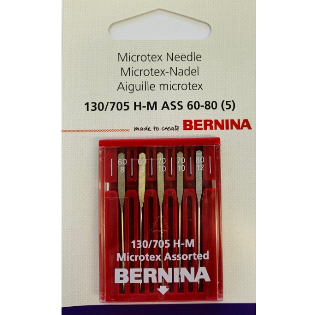 Igla za šivaći stroj “Microtex” s ravnim drškom posebno je prikladna za obradu najfinijih, modernih materijala poput mikrovlakana, poliestera, premazanih materijala ili tkanina s velikim brojem niti. Zbog vrlo oštrog, tankog vrha, igla iznimno lako prodire u tkaninu – rezultat je optimalan, “ravni” bod, vlakna nisu ozlijeđena.Kod toga, postiže se čist uzorak šavova s malo nabiranja šavova. Igle za šivaće strojeve “Microtex” oduševljavaju svojom vrhunskom kvalitetom, odlično su obrađene i svojim ravnim dizajnom stabla odgovaraju svim standardnim šivaćim strojevima. Praktično pakiranje za pohranu sadrži pet igala u veličinama 60, 70 i 80.