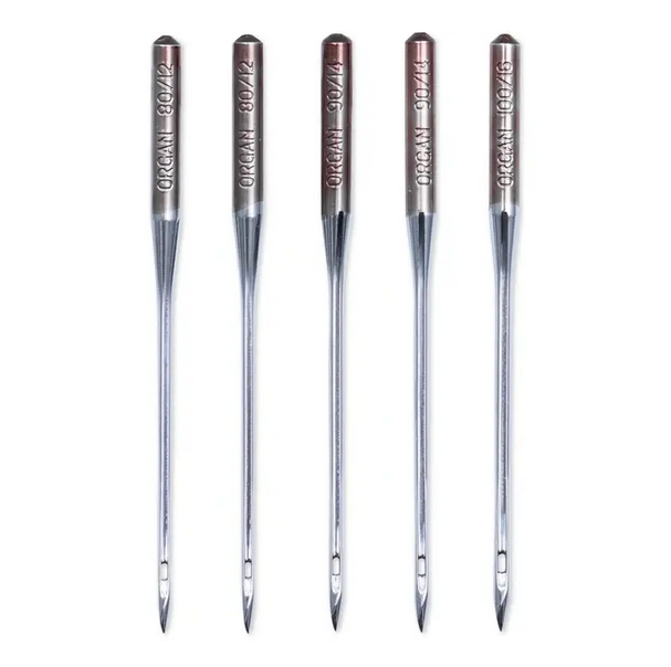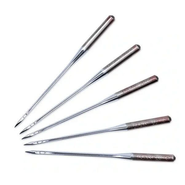 Five sewing machine needles in thicknesses 80, 90, and 100 are included in the assorted storage box.