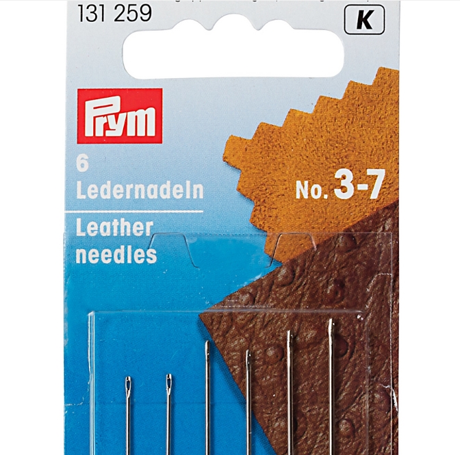 Leather needles made of hardened steel in sizes 3, 5, 7, and 9 are best suited for processing leather.