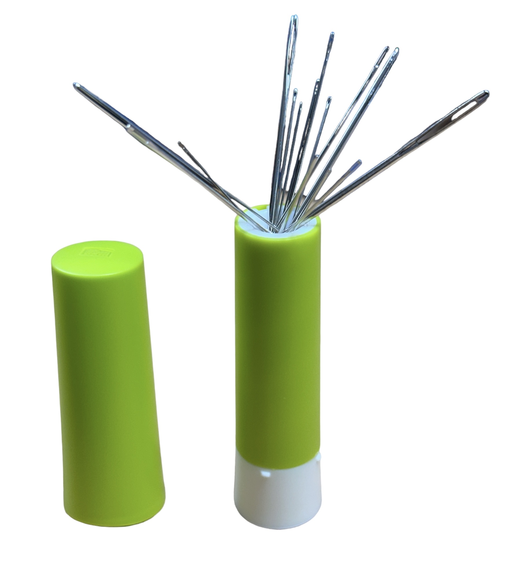 Perfect for beginners or as practical basic equipment. With the contents of this needle twister you have a wide range of different needles immediately to hand and when not in use they can be safely stored. The twist mechanism is easy to use and when unscrewed the needles fan out.. A reliable magnet in the interior holds the needles in position – if needles are lying loose on the table, they can be quickly and safely gathered up by the magnet. The needle twister is available in fresh pink, orange and light green and contains 15 sewing, embroidery and darning needles.