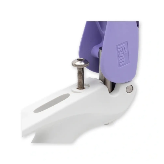 Item number: 390903 Decorate a pair of jeans with rivets, put press fasteners on baby clothing or punch holes for a hoodie cord and attach eyelets – with the Vario Creative Tool the versatile non-sew products by Prym can be processed very easily and without effort. Thanks to its ergonomic shape with soft touch surface the handle sits comfortably in the hand and does not slip. The measuring bar for measuring length and width, the plastic feet for secure standing and the option to finely adjust the power transmission allow fatigue-free, efficient and precise work. It is very easy to punch a hole: Raise the handle, insert the punching tools and position the fabric. Afterwards lower the handle, apply pressure and punch the hole in the material. Very handy: Punching tools in different sizes are already included. Moreover, the Vario Creative Tool is compatible with all existing Prym tool sets and consumer products in the Prym non-sew range – a comfortable alternative to the Vario press fastener, punch and eyelet pliers. A table clamp for added stability is available separately. In addition, the Vario Creative Tool in the ergonomics colours alabaster white, purple and lavender looks really nice on the worktable.