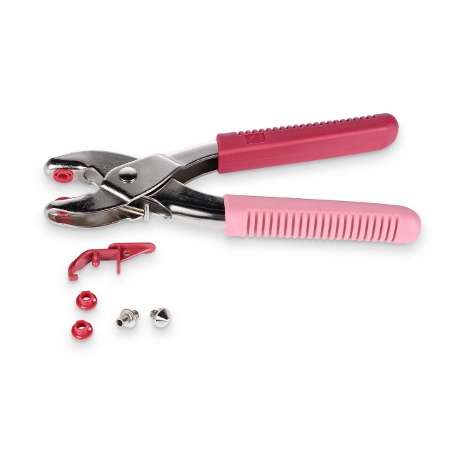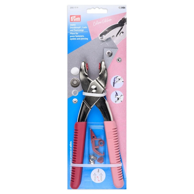With the versatile Prym Vario pliers for non-sew products, anorak press fasteners, jersey press fasteners, sport and camping press fasteners, jeans buttons, eyelets or rivets can easily be attached to the required fabric or leather without a needle or thread.