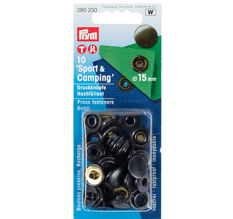• Non-sew press fasteners for strong fabrics in the camping and sports areas