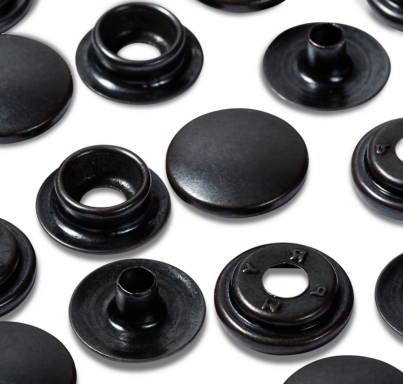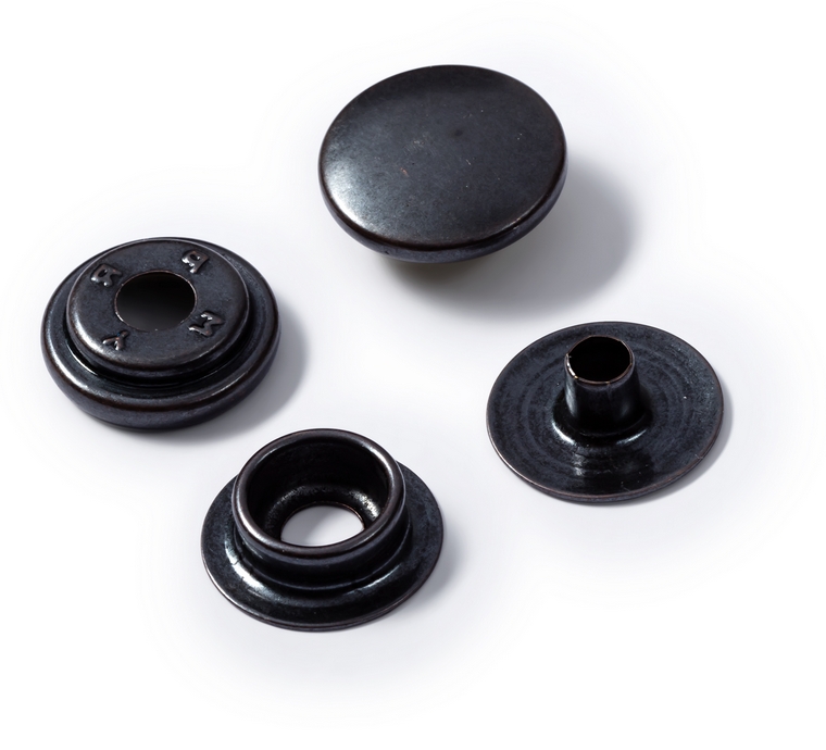 The press fasteners with a strong fastening strength for the mounting on canvas or other strong materials are available in various colours.