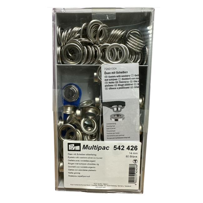 Eyelets and washers with Tool: SILVER – 14mm – 80 sets MULTIPAC